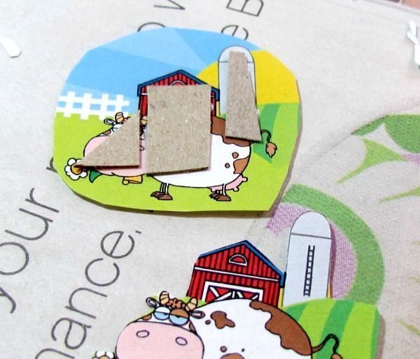 Agora, se você quiser criar um enfeite em 3D, cole pedaços de papelão na primeira figurinha e cole outra por cima. E faça isso mais uma vez.