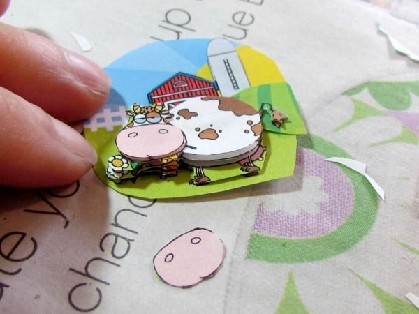Logo após, enquanto a tinta seca, recorte figurinhas ou separe os adesivos que vai utilizar em seu artesanato.