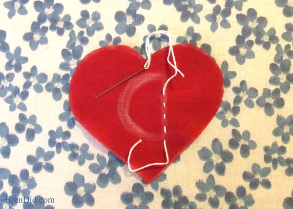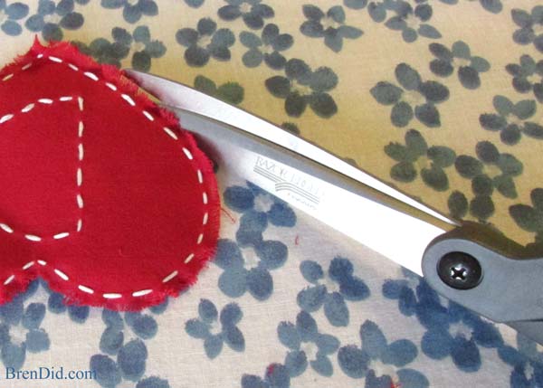 Desfie com os dedos a borda do coração de tecido.