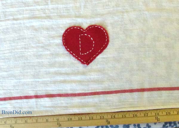Meça e posicione o coração na parte do pano de prato que você quer fixá-lo.