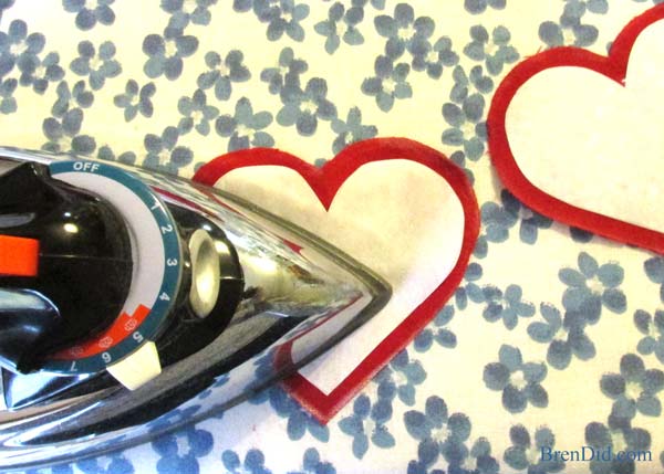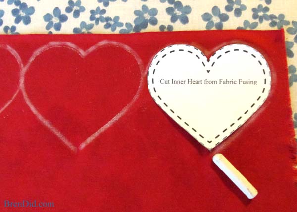 Transfira o molde para a entretela dupla face termocolante, mas transfira a parte interna do molde, o coração menor.