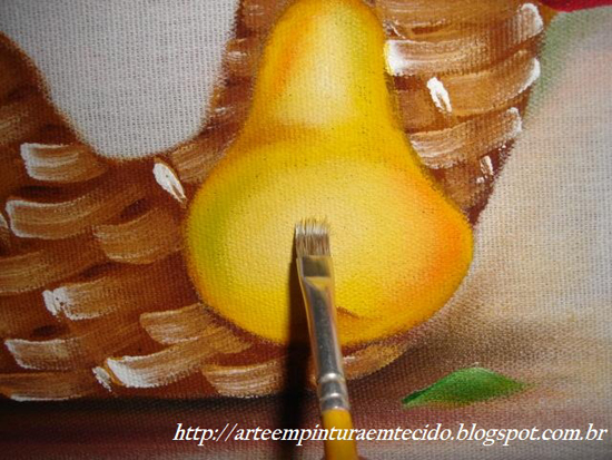 Aplique um amarelo mais escuro nas partes sem pintura da pera.