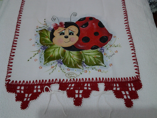 pintura em pano de prato joaninha