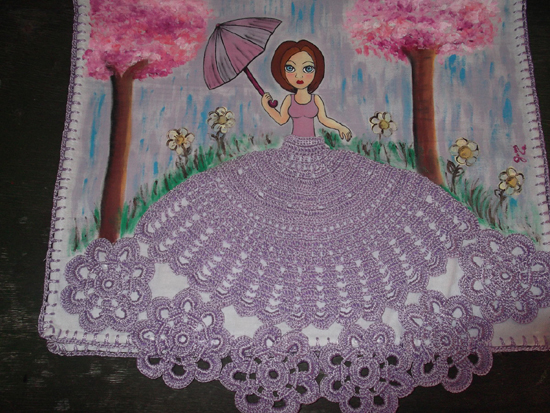 pintura em pano de prato boneca