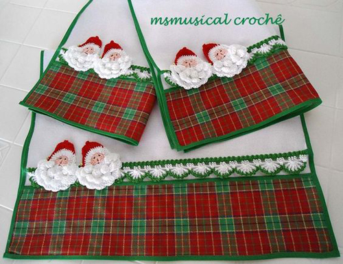 Você pode pintar personagens natalinos em seu pano de pato, você pode bordar personagens natalinos no pano de prato, você pode fazer aplicações em seu pano de prato do Natal, e você também pode costurar vários detalhes em seu pano de prato para o Natal. Mesclar técnicas de artesanato para decorar o seu pano de prato para este Natal também é permitido.