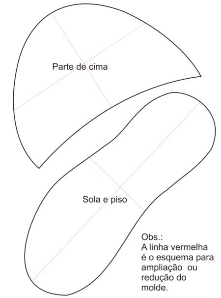 Em seguida, corte a palmilha da pantufa, sendo 2 vezes no feltro colorido e 2 vezes na manta acrílica.
