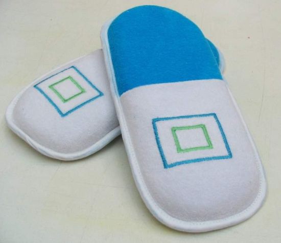 Posicione a parte superior da pantufa sobre a inferior e alfinete ou alinhave. Costure em toda a volta para prender as duas partes.