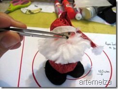 – Após isto é só colar o bonequinho do Papai Noel na base.