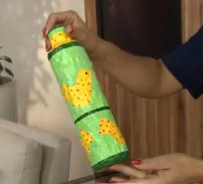 - Cubra toda a garrafa com a ajuda da cola e faça várias camadas, intercalando entre secagem e colagem;
