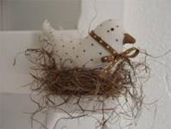 – Para finalizar, você pode decorar o pássaro com fita cizal fazendo um laço ao torno do pescoço.