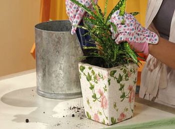 Em seguida, coloque a planta escolhida no vaso e complete com terra.