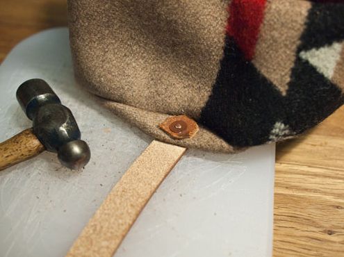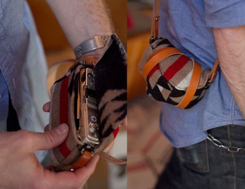 Para finalizar use uma tira de couro ou de lona para envolver e fechar a bolsa. O tamanho ideal para este modelo é de uma tira que consiga dar várias voltas ao redor da máquina, para garantir um charme extra. E para prender as alças na bolsa utilize rebites. E está pronta sua bolsa para câmera!