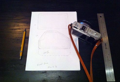 Comece fazendo o molde de sua bolsa. Para isso você terá que ir desenhando o formato de sua câmera. Se ela for retangular e com lente retrátil, melhor, basta você fazer o retângulo do tamanho de sua máquina e as laterais.