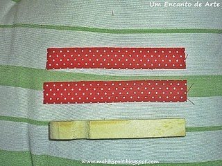 Monte novamente o prendedor e passe cola branca no prendedor e cole o tecido;