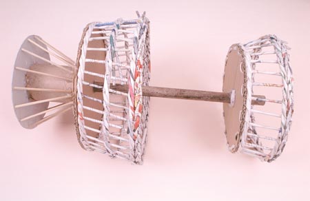 Para fazer esta linda fruteira você irá precisar de: bacia com as seguintes medidas: 35 cm de diâmetro e 12 cm de altura; 1 Bacia com as seguintes medidas: 25 cm de diâmetro e 9 cm de altura; 1 cabo de vassoura com 55 cm; 1 bobina de papelão com diâmetro de 8 cm e altura de 14 cm; 26 palitinhos de churrasco; 160 canudos de jornal; cola quente; cola branca; estilete; tesoura; alicate; chave de fenda; ferro de solda; barbante; papelão; tinta látex (com a cor de sua preferência); e verniz marítima.