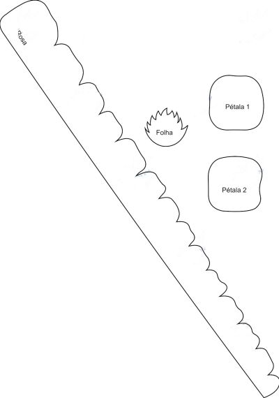 Comece transferindo os moldes para as respectivas cores dos EVAs. Faça duas pétalas soltas e três folhas. Recortes todas as peças.
