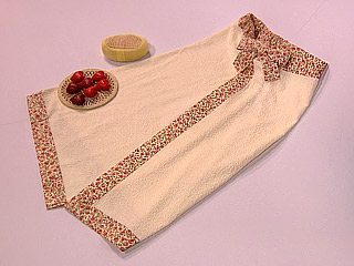 Para fazer esta lindíssima saída de banho você irá precisar de: tecido atoalhado com tamanho de 70 cm x 1,40 cm (com a cor de sua preferência); tecido de algodão com tamanho de 1 metro (com a cor ou estampa de sua preferência); 70 cm de elástico; 80 cm de velcro; tesoura; linha e agulha.