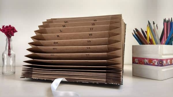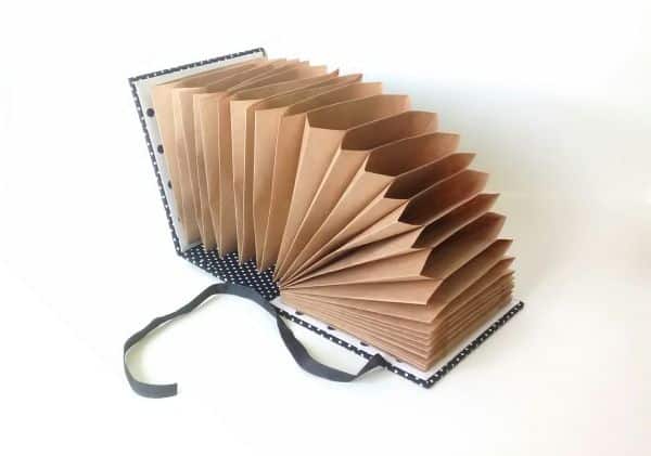 Dobrar de forma simples o papel craft e colar as laterais pode ser uma forma mais fácil de criar a sua pasta sanfonada. Aqui também a capa de sua pasta organizadora pode ser a que você quiser e decorada da forma que você quiser.