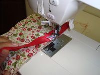 Passo 06 – Costurar os viés da parte reta do coração estampado;