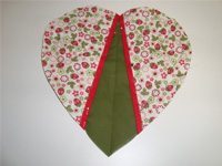 Passo 04 – Colocar o molde de coração sobre o conjunto do tecido liso, risque e corte;