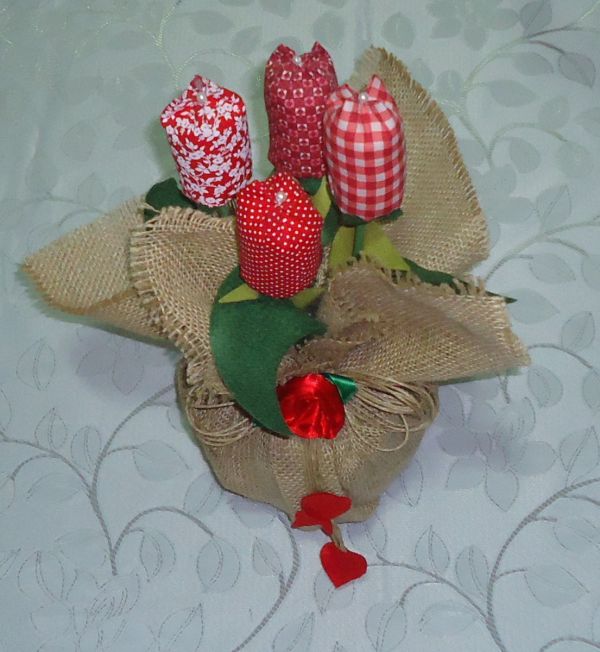 Só de você cortar o fundo de uma garrafa pet, encher com areia ou pedra, tampar e decorar com o material que tiver em mãos, como feltro, por exemplo, você já faz uma linda peça.