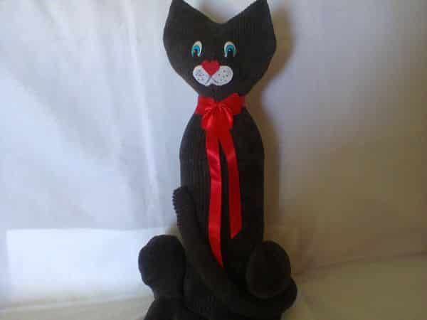 Gatinhos simpáticos e bem baratinhos podem ser conseguidos se você usar uma garrafa de amaciante cheia de areia ou pedras como base do seu peso de porta.