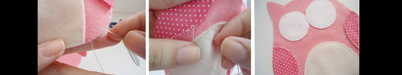 Costure as partes menores na parte da frente da corujinha.