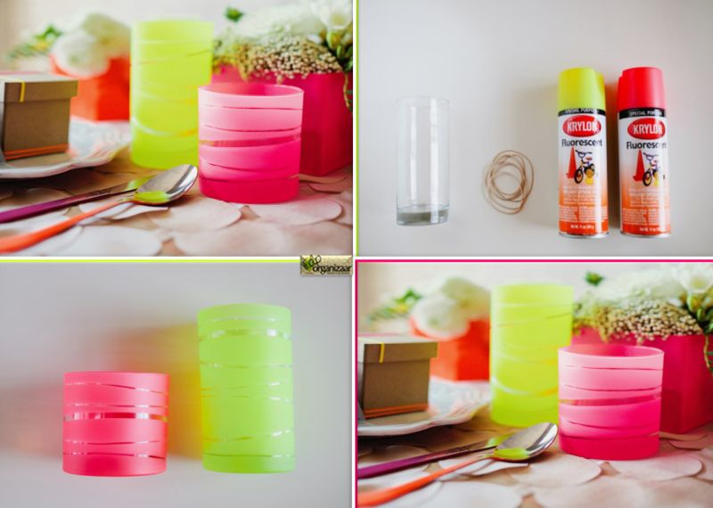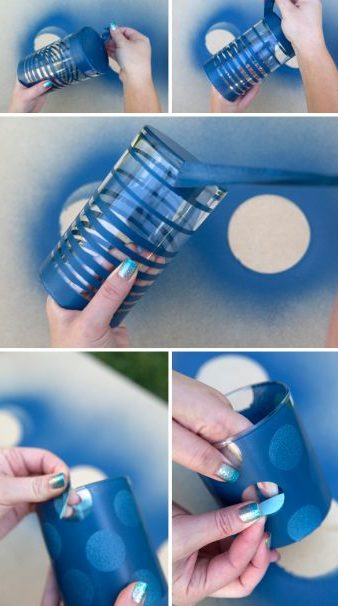 Você também pode aplicar adesivos, fitas adesivas, elásticos, entre outros, na superfície do vidro antes de pintar com tinta em spray.