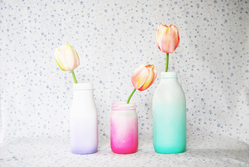 Você também pode fazer efeito degradê na pintura do vidro, usando duas ou mais cores de tinta em spray.