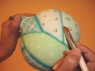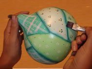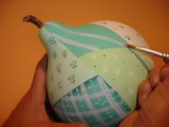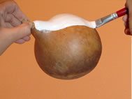 Usando um pincel de cerdas macias, você irá passar a tinta para artesanato branca em toda a cabaça.