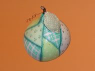 Depois só é encaixar o arame da folha no cabo da cabaça e tá prontinha sua linda pera decorada a partir de uma cabaça!