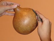 Primeiro escolha uma cabaça com formato de pera e com cabo. Lave com sabão e aguarde ela secar.