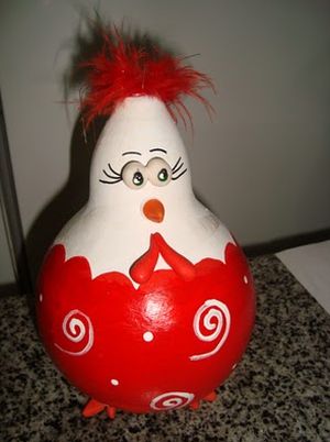 Quem tem um pouco de habilidade em pintura e adora criar peças novas vai adorar fazer uma pintura de galinha em cabaça, que pode conter as cores de sua preferência e o modelo da galinha que quiser. E este artesanato além de ser muito relaxante e resultar em um lindo objeto de decoração para a sua casa, ainda pode render um dinheiro extra, caso faça vários modelos para vender.