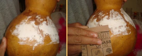 Para começar deve tratar a cabaça corretamente. Se ela possuir alguma imperfeição, passe massa corrida e quando a massa estiver seca, lixe com uma lixa de construção e retire o pó passando um pano seco. Em seguida, faça um furo no fundo da cabaça para retirar as sementes e possíveis bichinhos, e aplique um inseticida. Logo após coloque areia dentro da cabaça, pois ela é leve, e para que não caia é melhor enchê-la com areia. Feche a abertura com massa de biscuit e assim você já pode começar a pintura da cabaça.