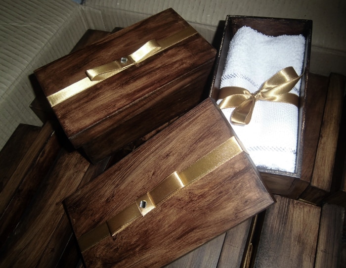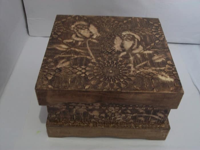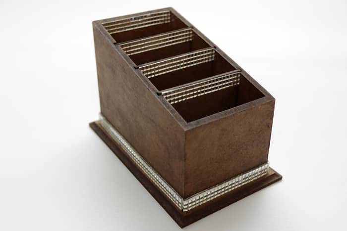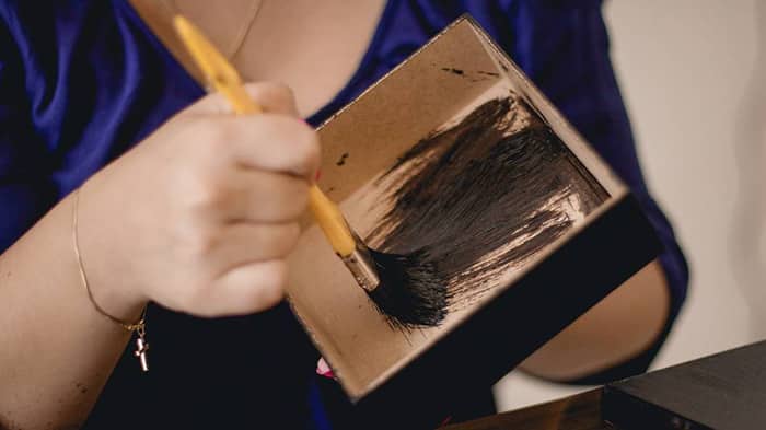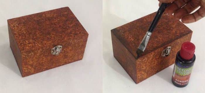 Se estiver pintando uma caixa, pode aplicar o betume também dentro. Deixe secar. E está pronto!