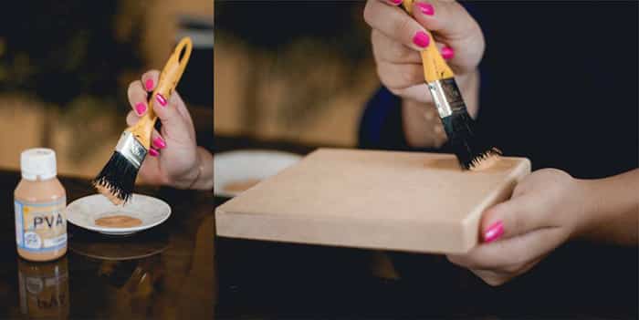 O Betume Colors possui uma grande variedade de tons, por isso é muito usado por quem trabalha muito com pintura em MDF e quer sempre um visual novo para as suas peças. Você pode fazer outras técnicas em seu MDF, como fazer textura com tintas em tons em degradê, por exemplo, e finalizar os cantos da peça com Betume Colors. Neste exemplo foi utilizado o Betume Colors cor tabaco.