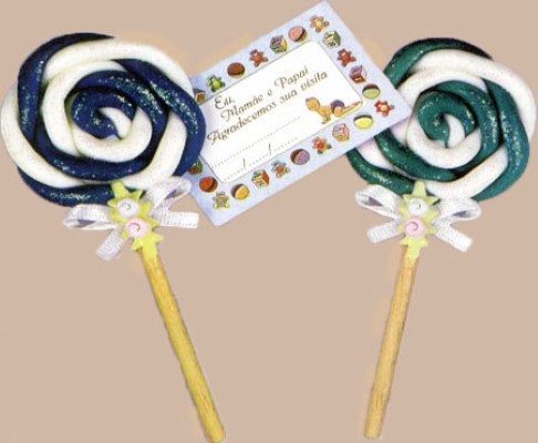 - Use um pouco de cola branca para prender a massa no palito e de preferência faça isso quando a massa estiver ainda mole.