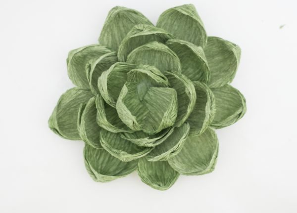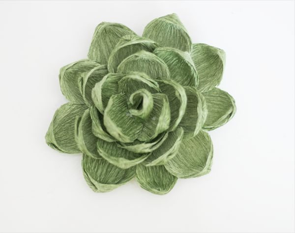 Em seguida, siga colando pétalas até preencher todo o círculo de papel estruturado, até criar a sua flor suculenta.