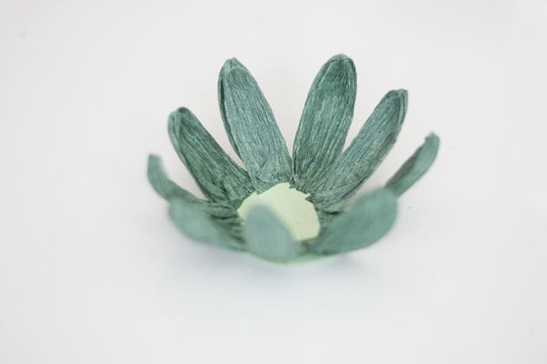 Logo após, corte a parte inferior da sua pétala criada, a parte em que estão posicionadas as pontas da tira de papel crepom.