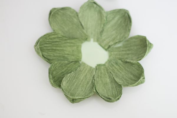 Logo após, cole pétalas até cobrir toda a borda do círculo de papel estruturado.