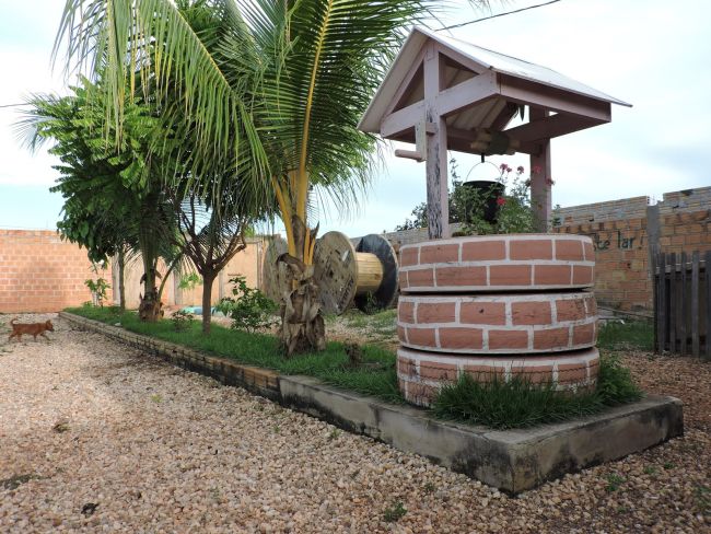 Os complementos do poço também podem ser feitos com material reciclável, como as madeiras sendo de pallets ou de demolição e o balde do poço sendo algum que você não use mais.