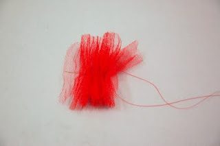 Primeiro você deverá cortar uma tira de tule com aproximadamente 10 cm de largura por 1 m de comprimento.