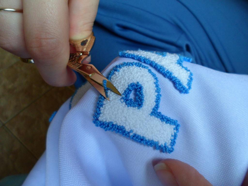 Para finalizar a sua peça, preencha a letra, fazendo o mesmo processo. Se quiser, aplique termolina leitosa no avesso do bordado. E está pronto!