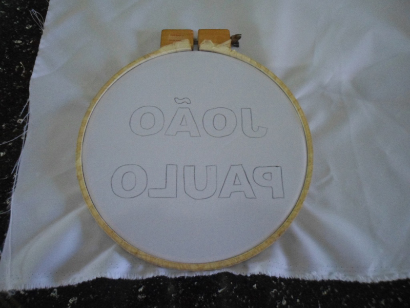 Transfira as letras para o tecido. Transfira a letra de forma invertida e pelo avesso do tecido, para que no direto do tecido a letra fique certa e o bordado correto.