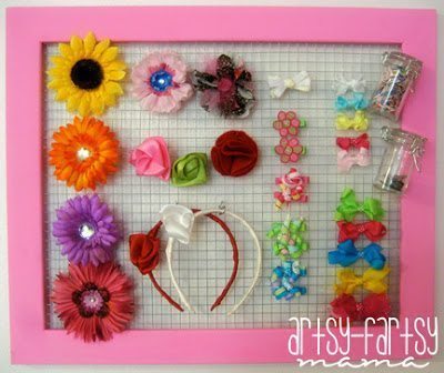 Créditos:http://www.artsyfartsymama.com/2011/05/diy-hair-bow-holder.html