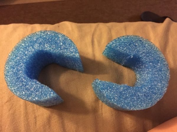 Em seguida, se você for utilizar o macarrão de piscina, corte duas partes, para que se encaixem e se transformem na base do seu porta-aliança.