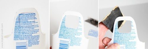 Use uma tesoura bem afiada para cortar o recipiente e no final ele deve ficar como na imagem .