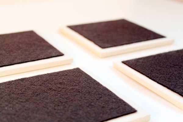Em seguida, cole na parte de baixo do azulejo o quadrado de feltro.