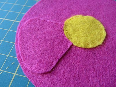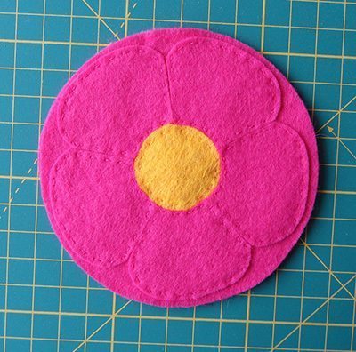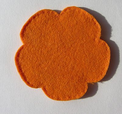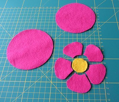 Logo após, posicione as partes da flor sobre um dos círculos de feltro cortados anteriormente.