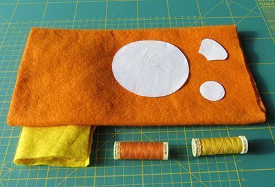Comece transferindo as partes do molde para as respectivas cores dos feltros escolhidos.